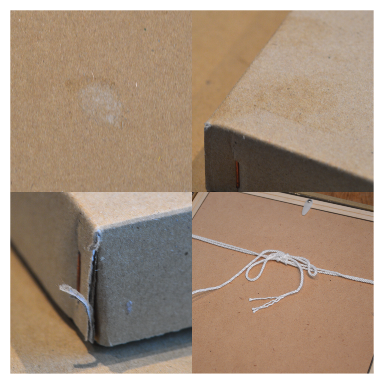 The frames themselves are free of any dirt or damage. There are slight scuffs on the packing box, and the included hanging string has been tied and untied once. We appreciate your understanding and hope you consider purchasing.